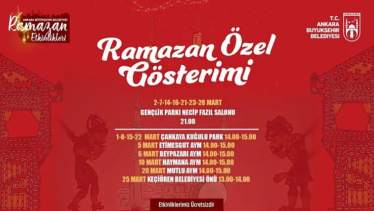 Ankara Büyükşehir Belediyesi (ABB), Ramazan boyunca 50'ye yakın noktada 500'ü aşkın etkinlik düzenleyecek.