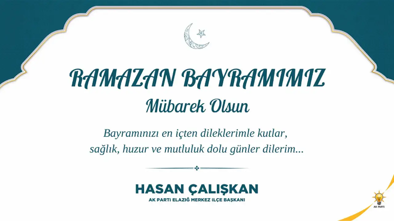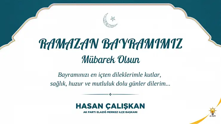 Ak Parti Elazığ Merkez İlçe Başkanı Hasan Çalışkan'ın Ramazan Bayramı Mesajı