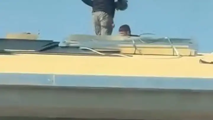 Elazığ'da 5 katlı binanın çatısında hiçbir güvenlik almadan çalışan işçiler yürekleri ağza getirdi.