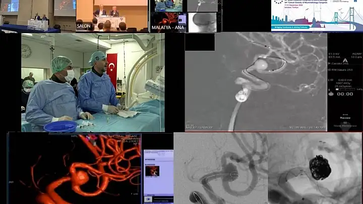 Toplantı kapsamında, İnönü Üniversitesi Turgut Özal Tıp Merkezi Girişimsel Nöroradyoloji Ünitesi'nden Prof. Dr. İsmail Okan Yıldırım ve Doç. Dr. Ahmet Turan Kaya öncülüğündeki ekip, beyin damarlarında oluşan baloncukların (anevrizma) kapalı yöntemle tedavisini canlı yayında gerçekleştirdi. Ameliyata Beyin ve Sinir Cerrahisi Anabilim Dalı'ndan Doç. Dr. Bora Tetik de eşlik etti. Zorlu operasyon, dünyanın dört bir yanından gelen bilim insanları tarafından anbean takip edildi.