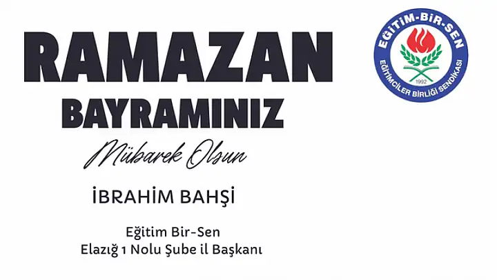 • Eğitim-Bir-Sen Elazığ 1 No'lu Şube Başkanı İbrahim Bahşi'nin Ramazan Bayramı Mesajı