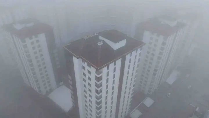 Elazığ'da 5 gündür etkisini sürdüren yoğun sis, kenti adeta görünmez hale getirdi. Özellikle yerden yaklaşık 200 metre yüksekliğe çıktığında şehir, sis tabakası nedeniyle neredeyse tamamen kayboldu. Drone ile çekilen görüntüler, kentin sis altında kaybolduğu anları gözler önüne serdi. Şehrin tepeden bakıldığında bulutların üzerinde gibi göründüğü bu kareler, kartpostallık manzaralar ortaya çıkardı.