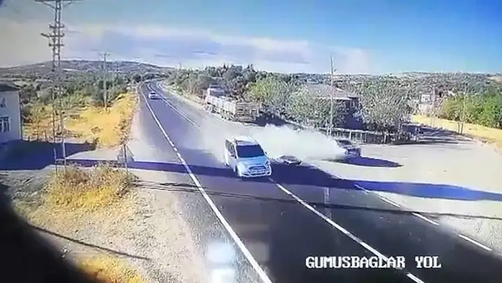 Olay, Elazığ-Pertek yolunda meydana geldi. Edinilen bilgiye göre, plakaları ve sürücüleri tespit edilemeyen hafif ticari araç ile dönüş yapan otomobil çarpıştı. Kazada yaralanan olmazken kaza anı, bir iş yerinin güvenlik kamerasına yansıdı.
