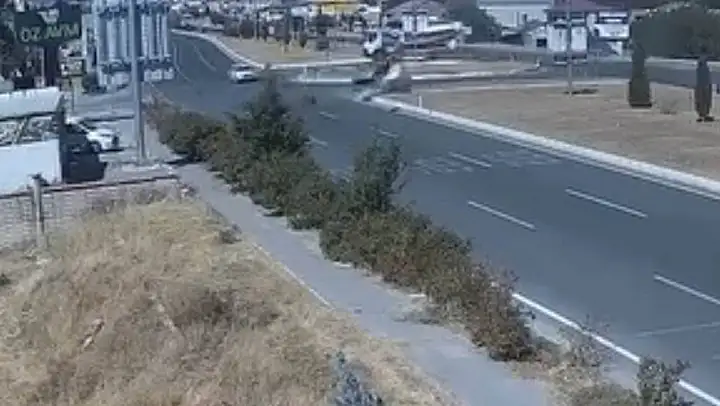 Kaza anının görüntüleri ortaya çıktı. Görüntülerde, otomobil çarptığı motosikletlinin havaya fırlayarak yere düştüğü ve otomobilin refüje çarparak yan yattığı görüldü.