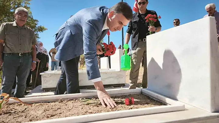 Tunceli'nin Çemişgezek ilçesine bağlı Güneybaşı köyünde hain terör örgütü PKK tarafından şehit edilen 6 sivil ile 2 güvenlik korucusu, kabirleri başında düzenlenen törenle anıldı.