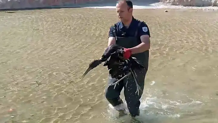 Havuza düşen yaralı leylek koruma altına alındı