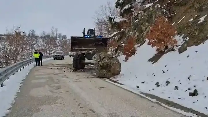 Kazıcı yükleyici yardımıyla yapılan çalışmalar sonucunda kaya parçası yoldan kaldırılarak ulaşım güvenli bir şekilde sağlandı. Yetkililer, sürücülere dikkatli olmaları konusunda uyarılarda bulunurken, bölgedeki yol güvenliği çalışmalarının devam edeceğini belirtti.