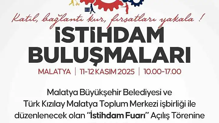 Yerel istihdamı güçlendirmek, iş arayanlarla işverenleri aynı çatı altında buluşturmak ve Malatya'nın iş gücü potansiyelini harekete geçirmek için düzenlenen İstihdam Buluşmaları Malatya başlıyor.