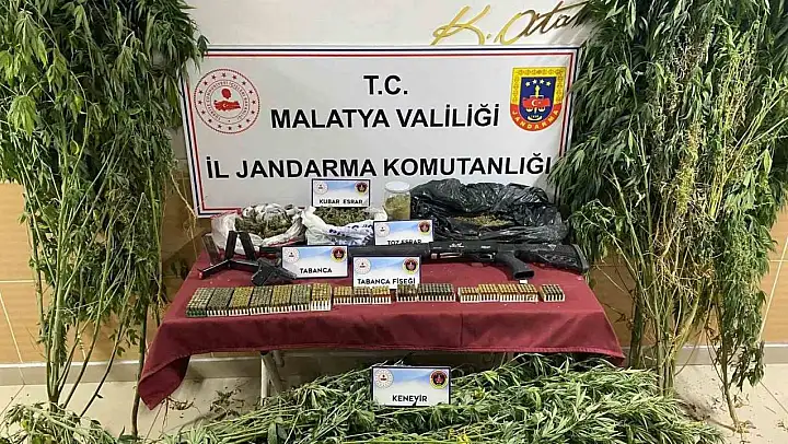 Malatya'da jandarma ekipleri tarafından düzenlenen uyuşturucu operasyonunda 550 gram esrar ve 32 kök kenevir bitkisi ele geçirilirken, operasyonda 1 kişi gözaltına alındı.