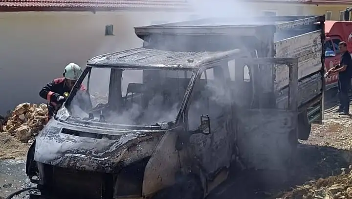 Malatya'nın Akçadağ ilçesinde bir şantiyede park halindeki araçta çıkan yangın paniğe neden oldu. Yangında araç kullanılamaz hale geldi.