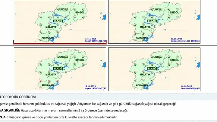 Kent merkezinde sabah saatlerinden itibaren başlayan sağanak yağış zaman zaman şiddetini artırarak devam etti. Bazı vatandaşlar hava durumuna bakarak şemsiyelerini yanına alırken hazırlıksız yakalanan vatandaşlar ıslanmaktan kurtulamadı. Meteoroloji, 13'üncü Bölge Müdürlüğü tarafından yapılan açıklamada, 'Bölgemiz genelinde havanın çok bulutlu ve sağanak yağışlı geçeceği, hava sıcaklıklarının mevsim normallerinin 3 ila 5 derece üzerinde seyredeceği, rüzgarın güney ve doğu yönlerden orta kuvvette eseceği tahmin edilmektedir' ifadeleri yer aldı.