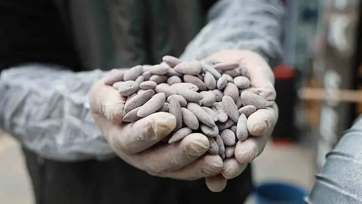 Elazığ’da sofraların vazgeçilmezi badem şekeri, her sene olduğu gibi bu sene de Ramazan ayında yoğun ilgi görüyor. Ramazan Bayramının yaklaşmasıyla birlikte, bayram sofrasında yer alacak olan badem şeker için kazanlar dönmeye başladı. Yapılışında, doğal pancar şekeri ve Elazığ’ın yerli bademin kullanıldığı badem şekeri, yaklaşık 3 saat süren çalışmanın ardından titizlikle paketlenerek satışa hazır hale getiriliyor.