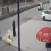 Elazığ’da sürücüsünün direksiyon hakimiyetini kaybettiği hafif ticari araç yan yattı. Kazada 1 kişi yaralanırken, kaza anı bir iş yerinin güvenlik kamerasına yansıdı.