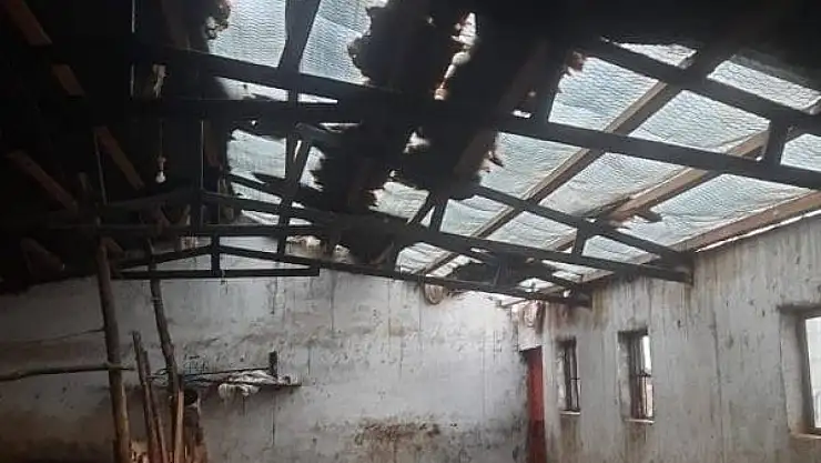 Elazığ'da etkili olan fırtına bir ahırın çatısını uçurdu.