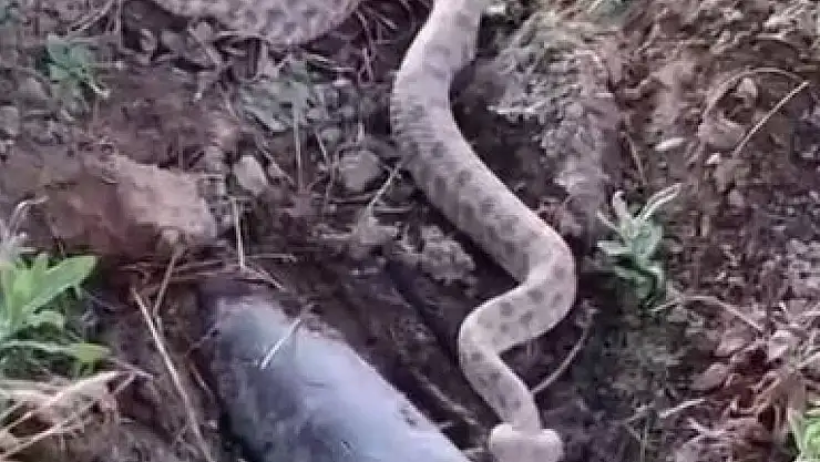 Elazığ'da koca engerek yılanı görüntülendi.