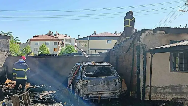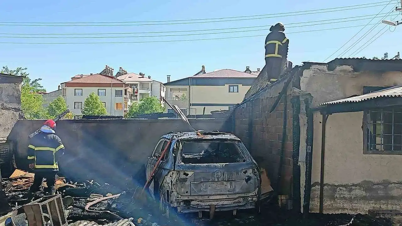 Elazığ'da korkutan yangın: Araba kullanılamaz hale geldi, odunluk kül oldu