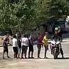 Elazığ'da bir motorcunun önünü kesen çocukları kırmayarak, ara gazla yaşadığı keyifli anlar cep telefonu kamerasına yansıdı.