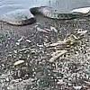 Elazığ'da bir yılan avladığı balığı kıyıya çıkardı. Vatandaşlardan rahatsız olan balık tekrar balığı alarak suya döndü, o anlar cep telefonu kamerasın yansıdı.