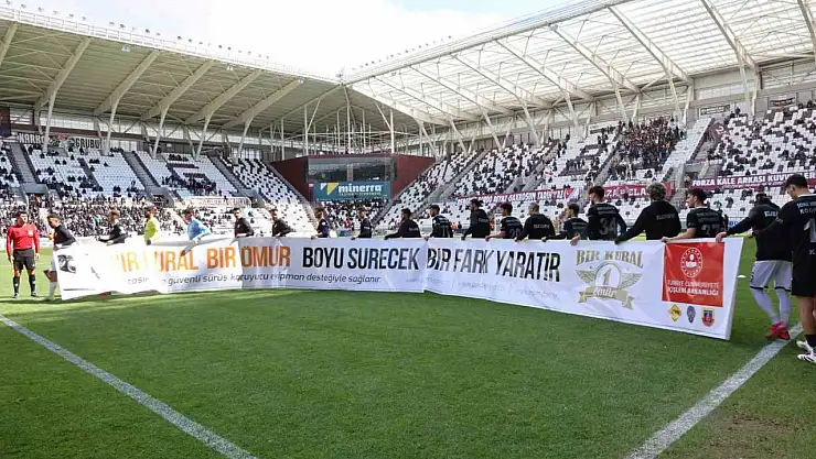 İçişleri Bakanlığının 'Bir Kural Bir Ömür' Eylem Planı kapsamında Çimentaş Elazığspor-Somaspor maçı öncesinde futbolcular, trafik kurallarının önemini vurgulayan afişle sahaya çıktı.