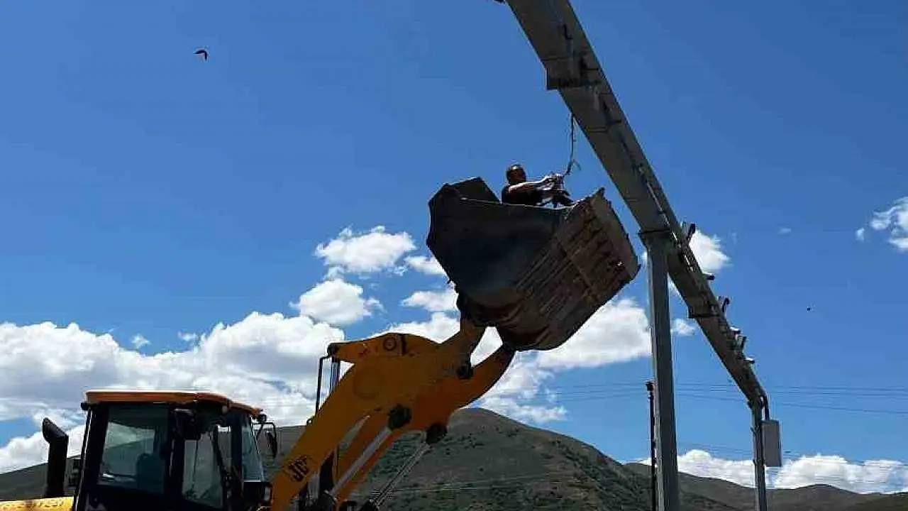 Güvenlik kamerası direğine takılan karga için seferber oldular