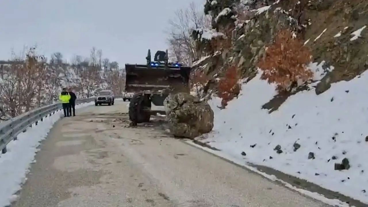 Kazıcı yükleyici yardımıyla yapılan çalışmalar sonucunda kaya parçası yoldan kaldırılarak ulaşım güvenli bir şekilde sağlandı. Yetkililer, sürücülere dikkatli olmaları konusunda uyarılarda bulunurken, bölgedeki yol güvenliği çalışmalarının devam edeceğini belirtti.
