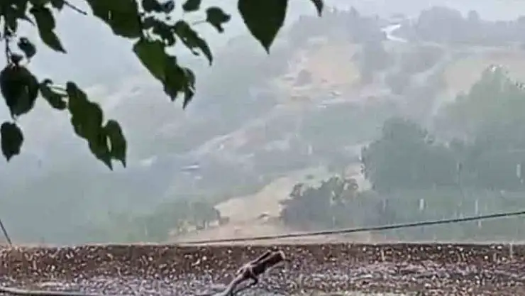 Elazığ’ın Karakoçan ilçesine bağlı Bazlama köyünde akşam saatlerinde dolu yağışı etkili oldu. Aniden bastıran dolu nedeniyle köyde kısa süreli paniğe neden oldu. Yaklaşık 10 dakika süren yağışın ardından köyde bazı bölgeler beyaza büründü.