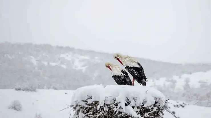 Bingöl'e erken gelen leylekler, yuvalarının kar altında olduğunu görünce şaşkınlık yaşadı.