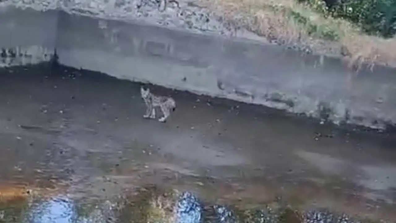 Dünya Doğa ve Doğal Kaynakları Koruma Birliği’nin (IUCN) kırmızı listesinde yer alan vaşak, Baskil ilçesi Düğüntepe köyündeki sulama havuzu içinde görüntülendi. Kayıt altına alınan vaşak daha sonra ormanlık alana girerek gözden kayboldu.