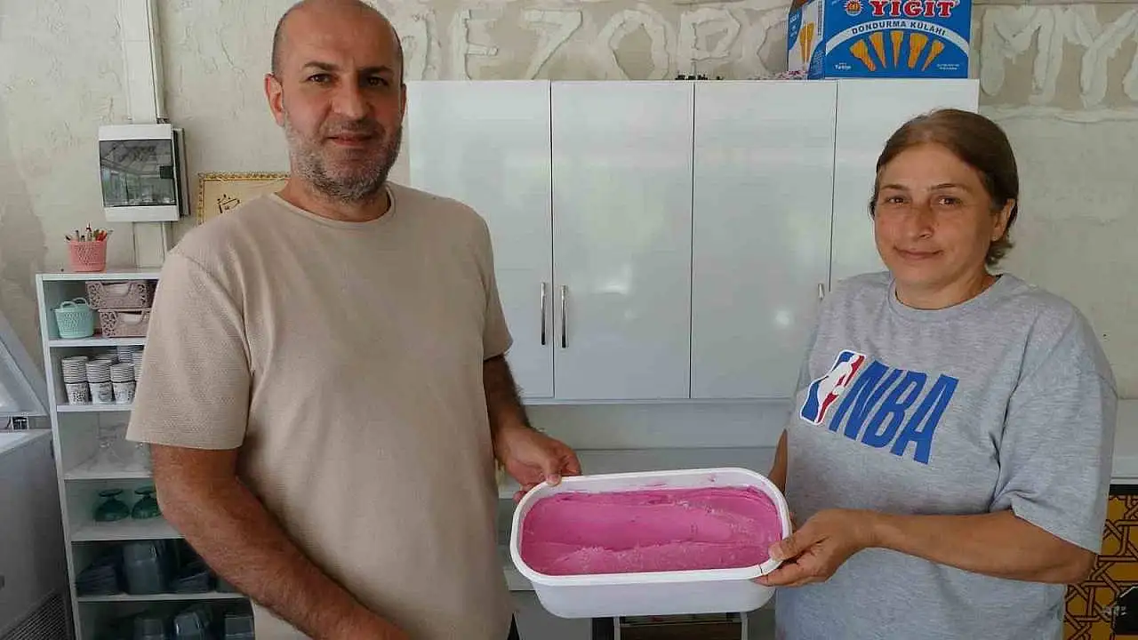 Doğal aroması ve sağlık açısından faydalarıyla bilinen mor reyhan dondurması, Hakan ve Meral Poyraz Üge çifti tarafından üretildi. Tamamen doğal yöntemlerle hazırlanan ve hiçbir katkı maddesi içermeyen dondurma, kısa sürede yoğun ilgi gördü. Türkiye’de bitki çeşitliliği kategorisinde coğrafi işaret alan ilk ürün olan mor reyhan daha önce reçel, çay, baharat ve şerbet gibi formlarda üretilirken, şimdi dondurmasıyla da dikkat çekiyor.