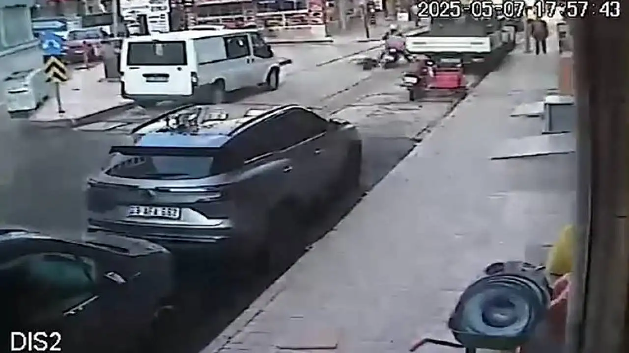 Elazığ'da yolda giderken dengesini kaybederek düşen yaşlı adama motosiklet çarptı. Kazada 2 kişi yaralanırken, o anlar bir iş yerinin güvenlik kamerasına yansıdı.
